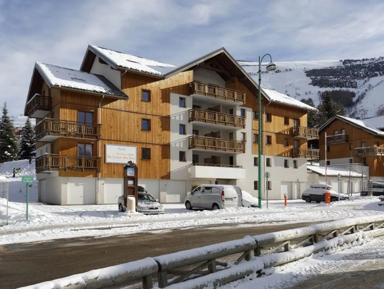 En location dans des appartements cosy et agréables au sein d’une résidence à l’architecture soignée, profitez de la situation du Village au pied des pistes !