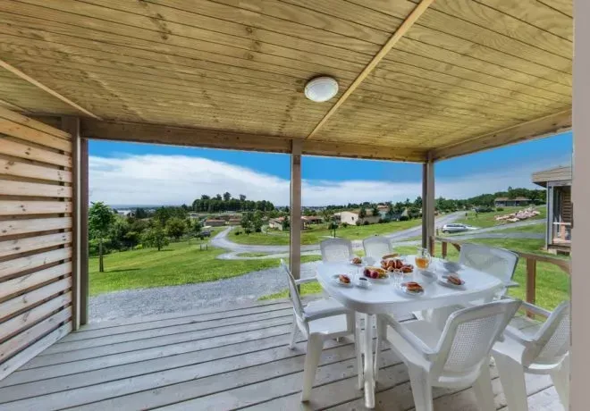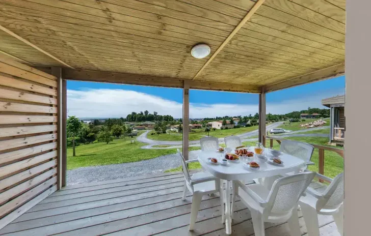 - Chaque logement est équipé d’un séjour avec TV, cuisine équipée (plaque induction, micro-ondes, réfrigérateur/congélateur, cafetière électrique, lave-vaisselle), salle de bain (douche uniquement) et WC séparés, et une terrasse couverte (10 m’) avec mobilier de jardin.