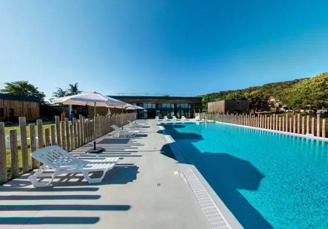 Piscine et Bien-être : Piscine intérieure (d’avril a novembre) et piscine extérieure chauffées (de mi-juin a mi-septembre). Pataugeoire pour les enfants, solarium équipé de transats et de chaises et espace forme en extérieur libre d’accès.