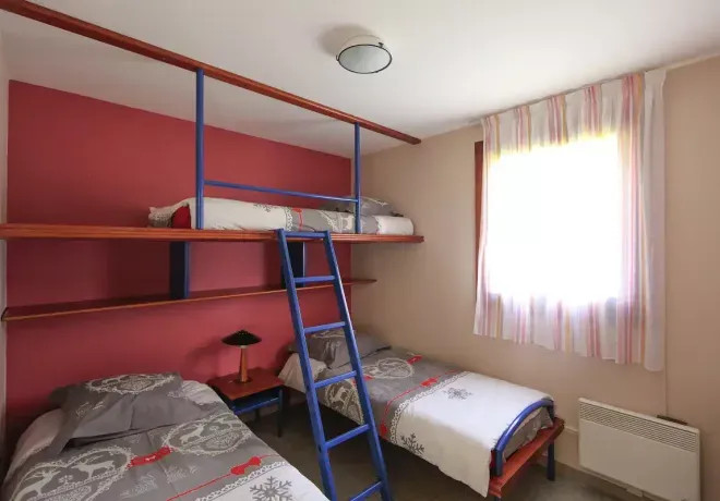 Séjour (lit double ou lits simples). Chambre (lits simples, lit superposé). Cuisine. Salle de bains, WC. TV. Terrasse.