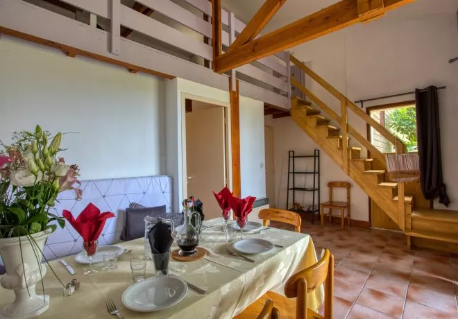 Tous nos hébergements disposent d’un coin cuisine équipé, d’une télévision, d’une terrasse avec salon de jardin.