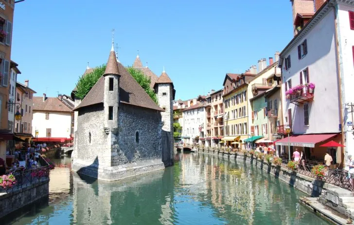 Impossible de visiter Annecy sans faire un détour par son monument le plus photographié : le Palais de l’Isle, cette bâtisse médiévale du XIIᵉ siècle posée sur le canal du Thiou, au cœur de la vieille ville.