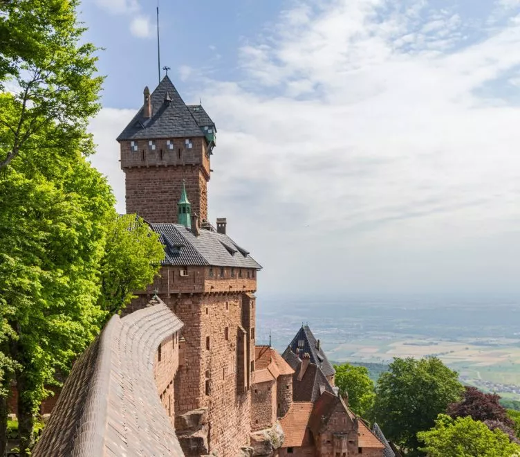 Le château du Haut-Koenigsbourg : perché à près de 800 m d’altitude, il domine la plaine d’Alsace et offre un panorama exceptionnel jusqu’aux Vosges, à la Forêt-Noire et même aux Alpes par temps clair. Entièrement restauré au début du XXᵉ siècle, il permet de plonger dans l’univers médiéval avec ses remparts, son donjon, ses canons et sa salle des chevaliers. Le village d’Orschwiller : petites rues typiques, maisons à colombages et ambiance paisible.