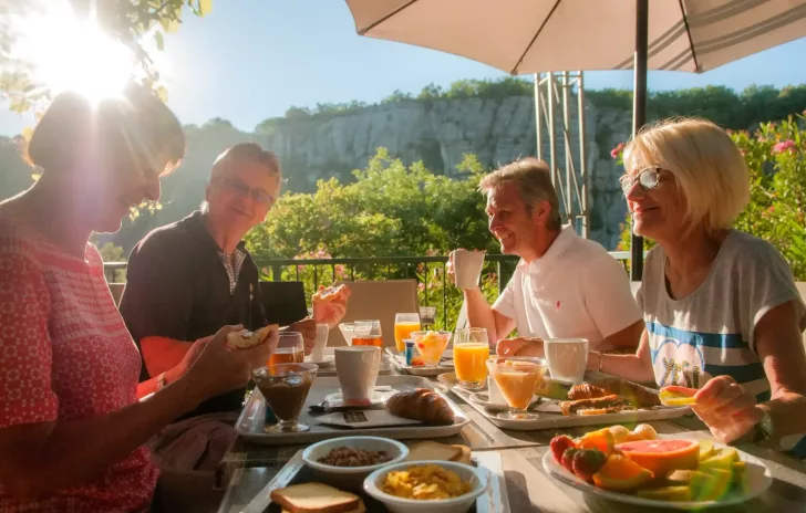 La pension complète, c’est tous vos repas inclus : petit-déjeuner, déjeuner et dîner. Buffets variés et équilibrés, avec des produits locaux mis en valeur. Des repas adaptés aux enfants et aux régimes spécifiques (sur demande). Des repas thématiques pour découvrir la gastronomie régionale : tapas, barbecues, fruits de mer, spécialités locales… Vin inclus dans certains établissements, pour partager des instants conviviaux. Possibilité de paniers repas à emporter, pratiques lors de vos excursions.